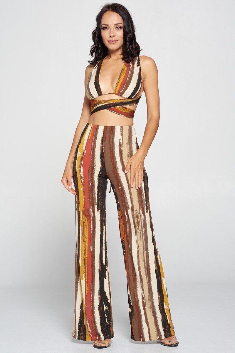 Tie Around Detail Crop Top and Flare Pants Set