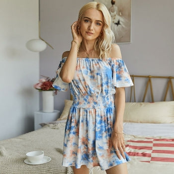 Off Shoulder Tie-dye Printed Romper