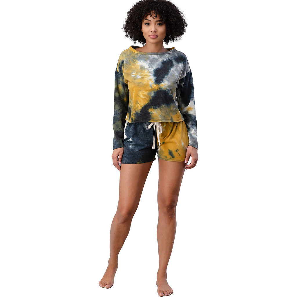 FRENCH TERRY TIE DYE LONG SLEEVE TOP AND SHORTS SET