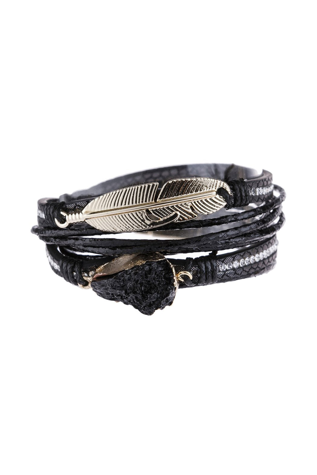 Feather Druzy Leather Wrap Magnetic Bracelet