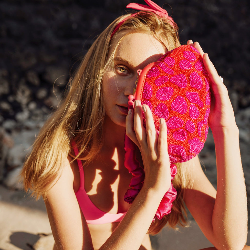 ARNOLDI PEACHPUFF Hand-beaded Clutch, in Papaya & Peach