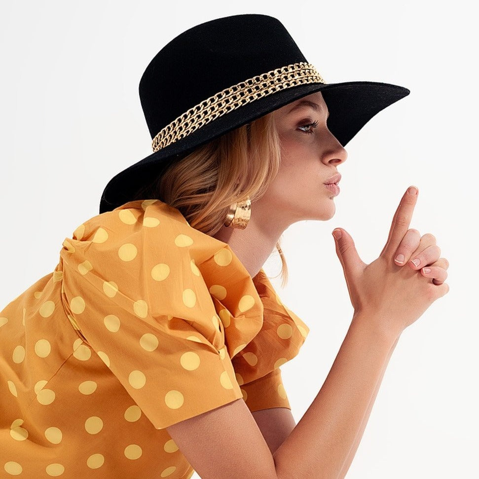 Polka Dot Top With Puffed Sleeves and Square Neckline in Yellow
