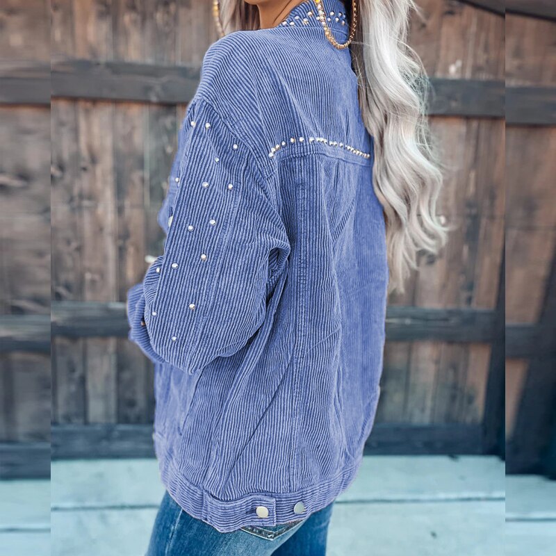 Corduroy Fashion Long Sleeve Tassel Button Coat