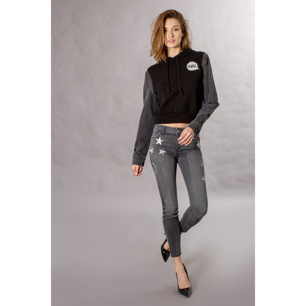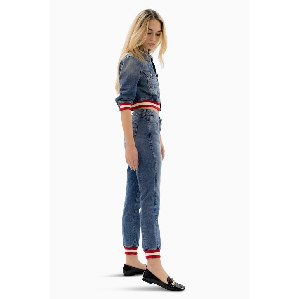 Blue Denim Jacket Long Sleeve Hooded Bohemian Style Jacket