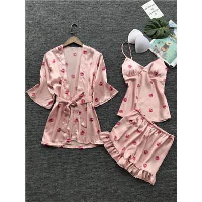 Pajamas women's summer thin section ice silk sling shorts robe