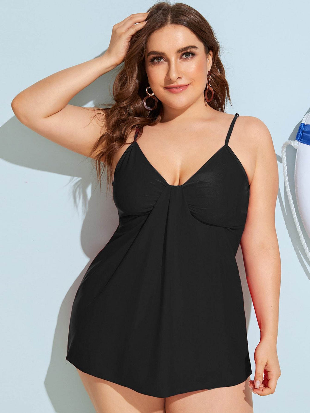 Plus Black Detachable Straps Top With High Waist Tankini