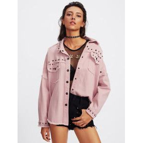 Pink drop Shoulder Frayed Hem Studded Jacket