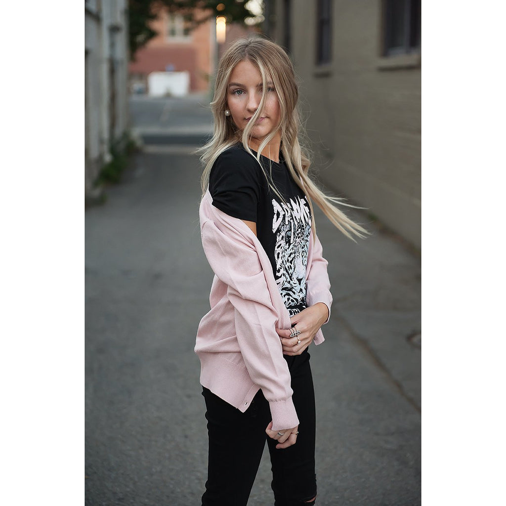 Pink Knitted V-Neck Cardigan