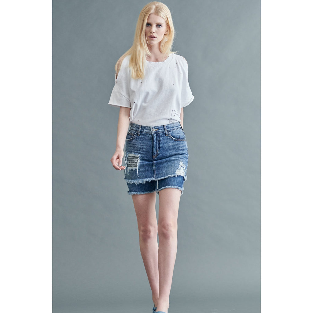 Denim Women's Wear Washing Process High-Waisted Irregular Denim Skirt