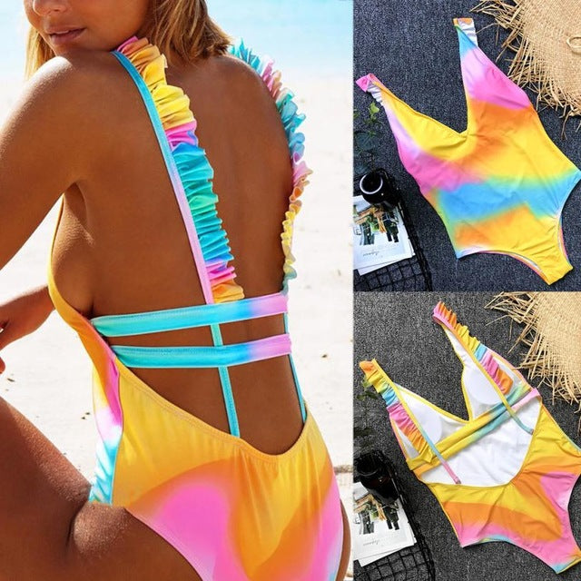 Backless bikini yellow Multi Rope swimwear Brazilian One Piece