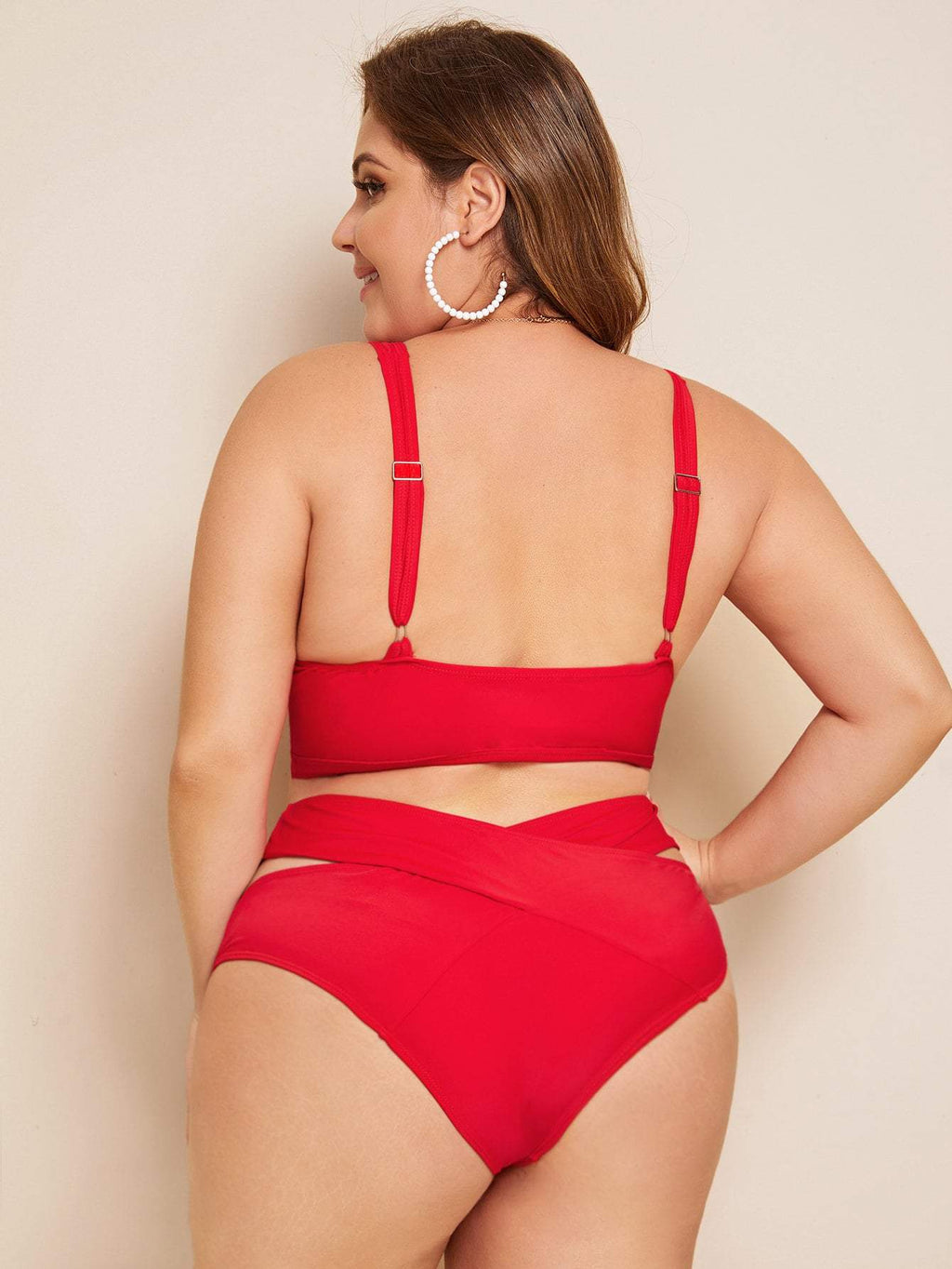 Queen Plus Collection Red Knot Front Cut Out Bikini Set