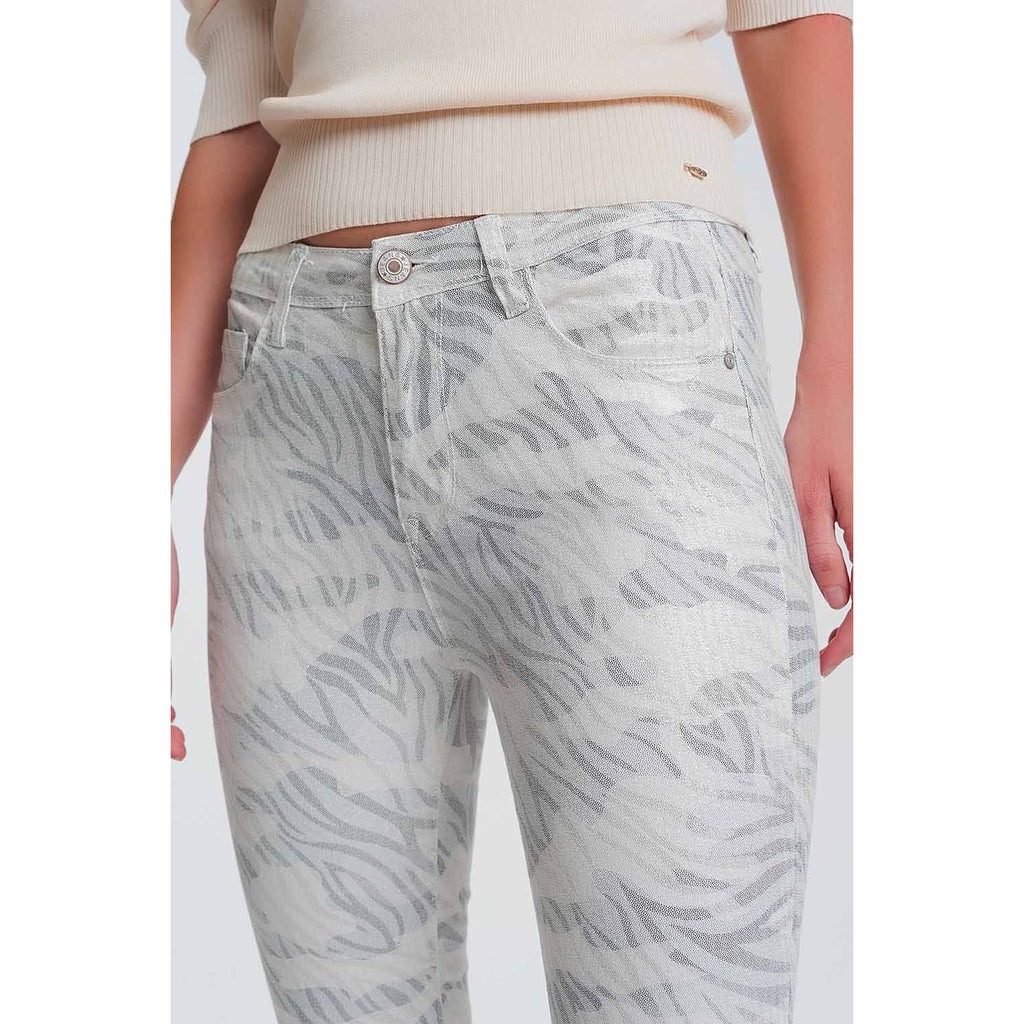 Super Skinny High Waisted Pants With Silver Sparkle in White
