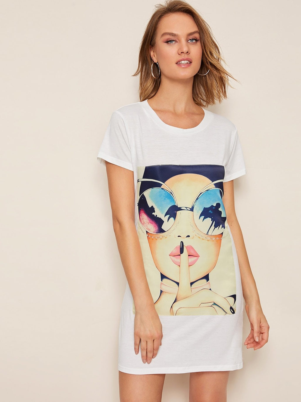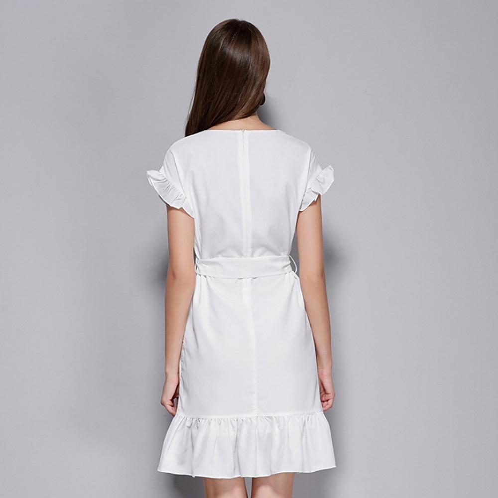 White Lace-up Short Sleeve Cotton dress Bat Sleeve Buttoned Shirt Dress