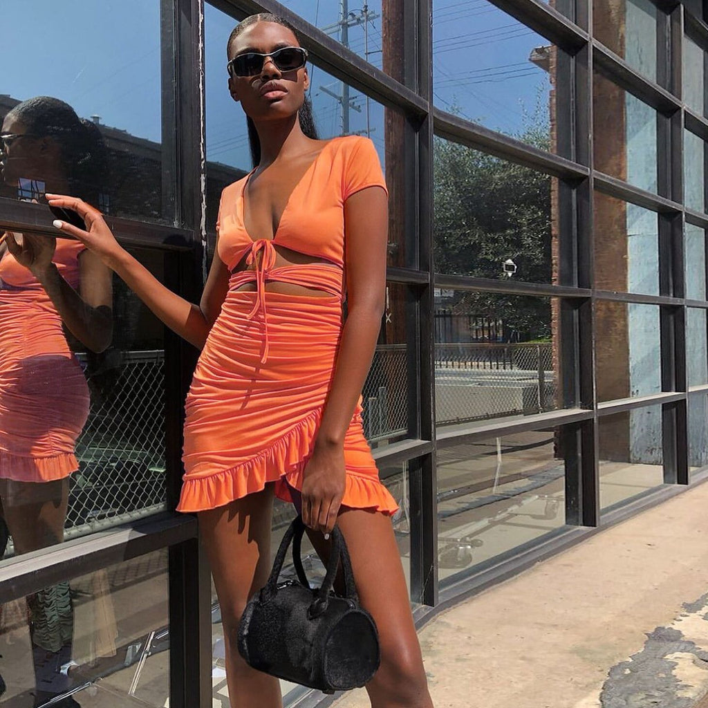 Glamaker Two piece set split knot long dress Sleeveless square collar fashion streetwear dress