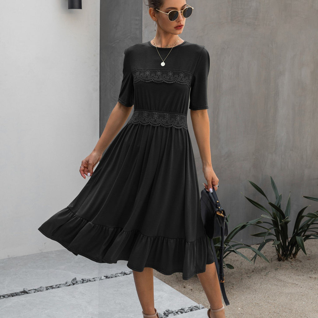 Elegant Dress Two Piece A-line O-Neck Lace Up Dress