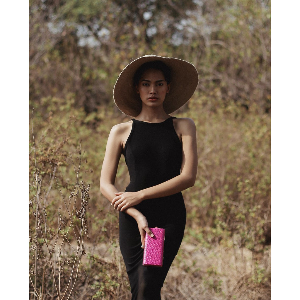 RIRI DUO Jute Straw Hat, in Burnt Sienna & Black